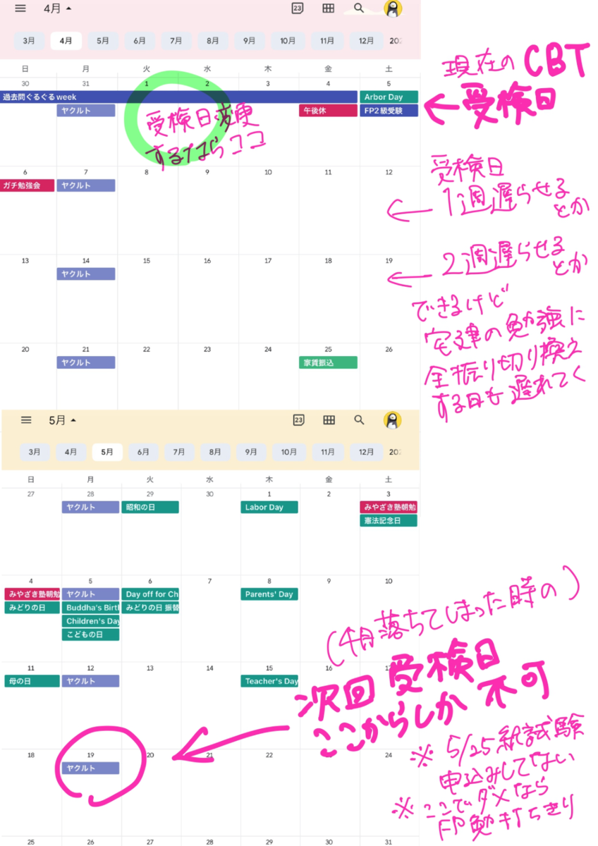そしてこの2日間を経て、受検日は予定通り4月5日と気持ちを固められました。