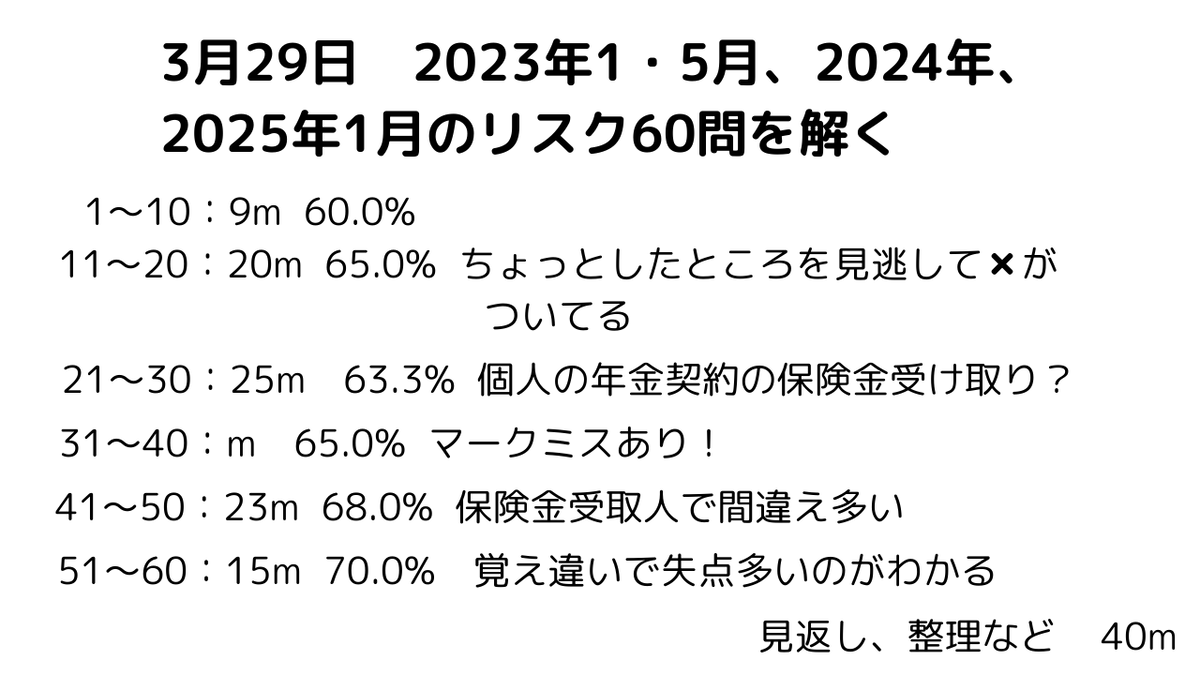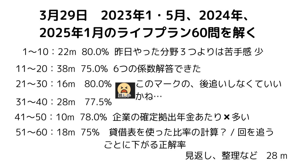 ただ、3月下旬になって過去問を回せていないことに、すごく不安を覚えて受検日を早まっただろうか???という迷いが生じ始めました。