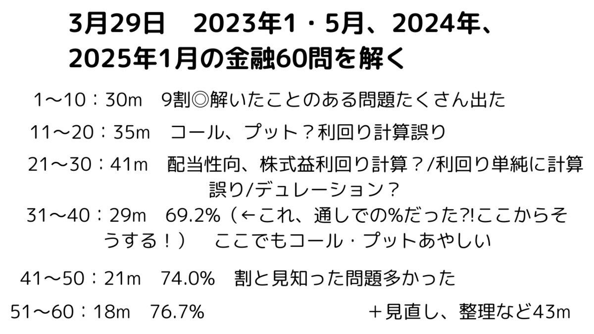 2カ月があっという間に過ぎてしまったことに焦りつつも、キリがいいところで3月1日に過去問に着手。