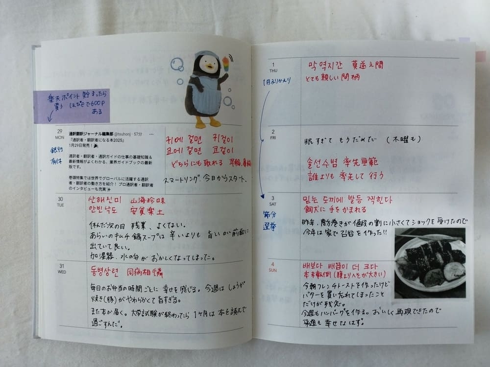 この、韓国のキャラクターが好きなので毎年、カレンダーと手帳セットを買ってしまう……買ったからには何か書いておこうという感じなのですが、書く行為自体も好きなので続いています。